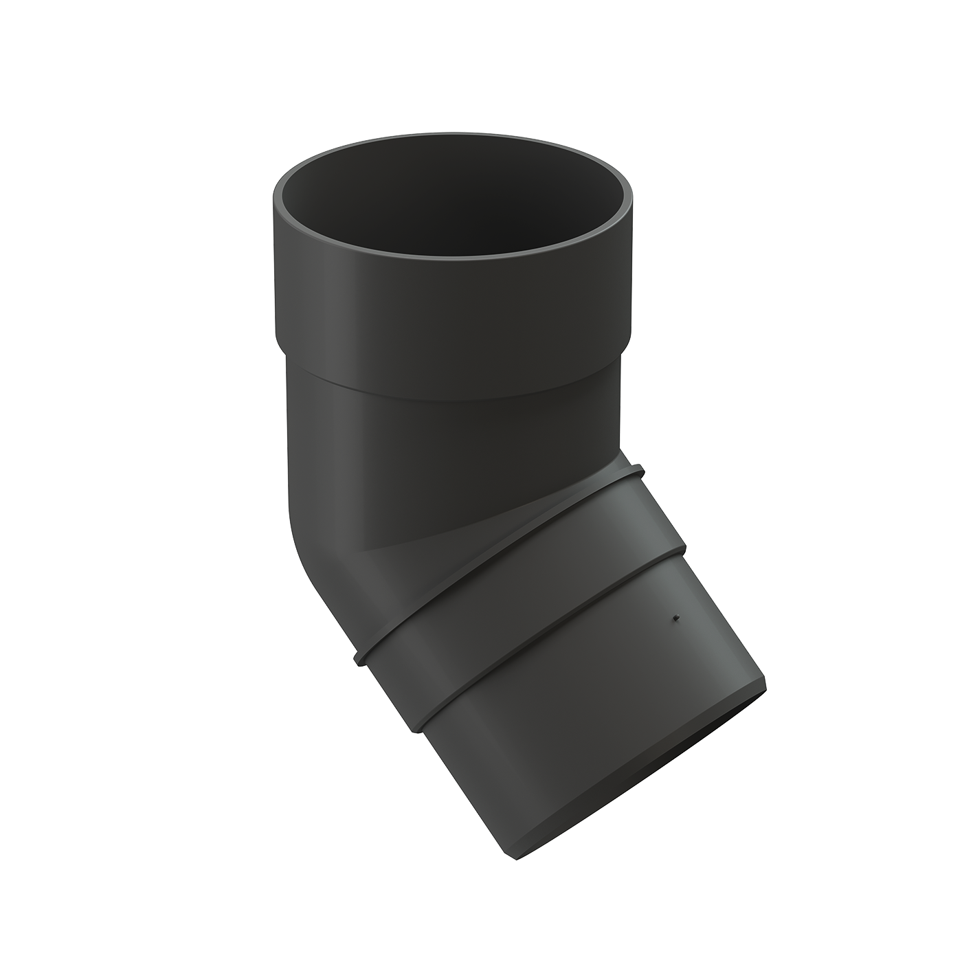 Колено 45 градусов с толщиной стенок 1,8 мм — элемент серии «Premium», который необходим для формирования фигурной конструкции связи между желобом и трубой водостока.