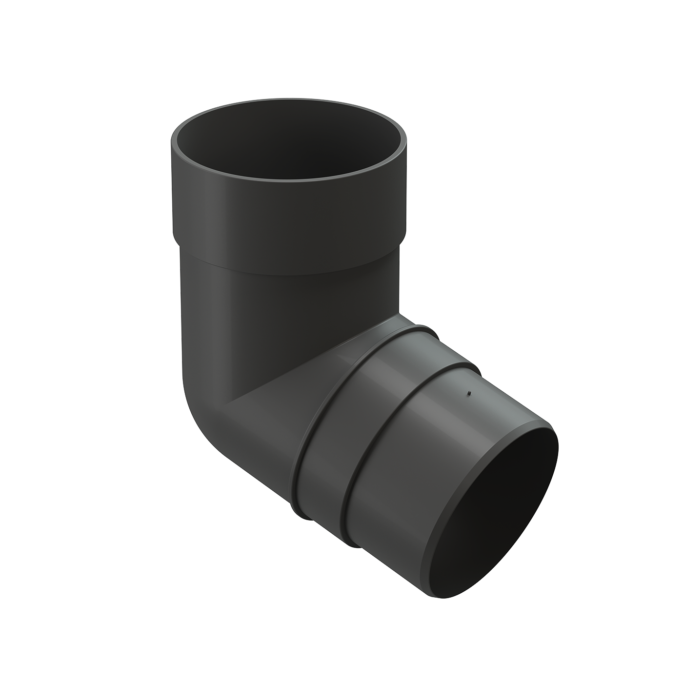 Система колен 72 градуса, окрашенная в цвет «Графит» необходима, чтобы связать воронку желоба и трубу, огибая выступы кровли.