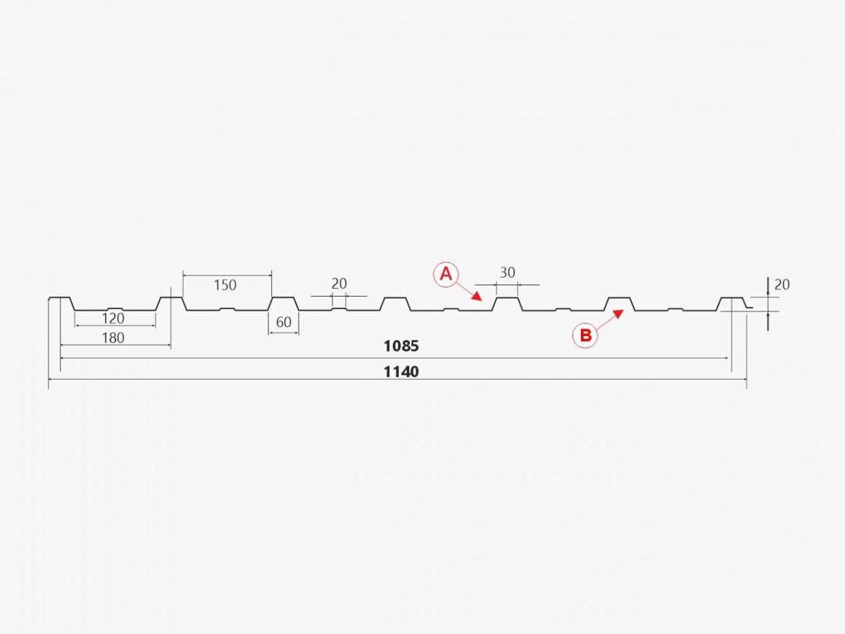 Профнастил Н20.30 обладает большей жесткостью, чем модель Н10.40 – 1190, что позволяет сократить количество несущих элементов при монтаже конструкций