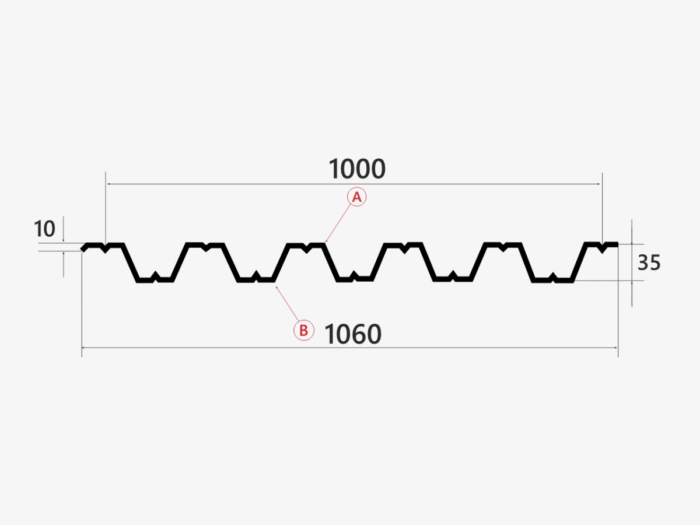 Профнастил НС35 отлично подойдет для устройства кровли. Данный материал имеет сравнительно небольшой вес при достаточно высокой несущей способности, которой он обязан дополнительным рёбрам жесткости и высоте трапециевидного профиля