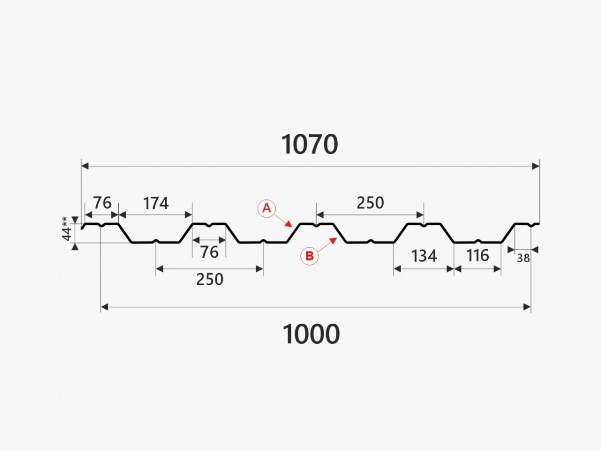 Профнастил HС44 с одинаковым успехом может использоваться как для монтажа стеновых ограждений, так и для устройства кровли жилого дома.