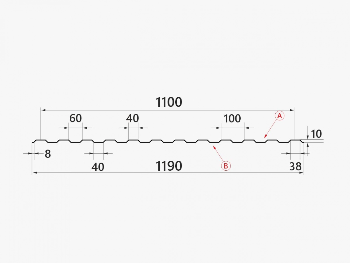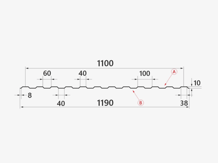 Профнастил марки Н10.40 – 1190 применяется как облицовочный материал для потолков, стен, ограждений и т.д., а также в качестве кровельного покрытия