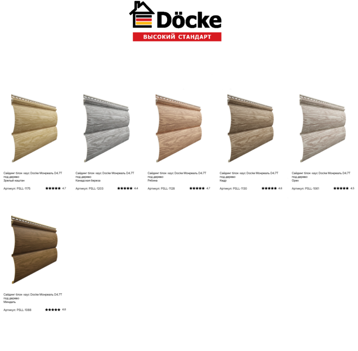 Сайдинг виниловый Docke LUX под дерево, Коллекция Монреаль Блок-Хаус D4.7T