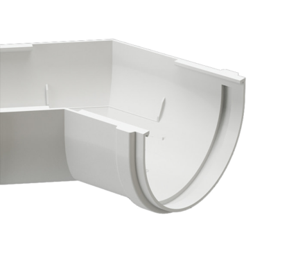 Угловые элементы устанавливаются как на внешних, так и на внутренних углах кровли и предназначены для соединения желобов